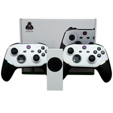 Os controles chamam atenção pelo design inspirado nos controles do Xbox, apresentando acabamento satisfatório com analógicos clicáveis com botões L3 e R3. A bateria interna permite recarga via USB-C, eliminando a necessidade de pilhas. O aparelho possui formato compacto que facilita o transporte e armazenamento.